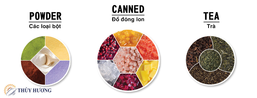 – Các loại bột: bột matcha, bột khoai môn, bột mix, bột cacao, bột sữa…