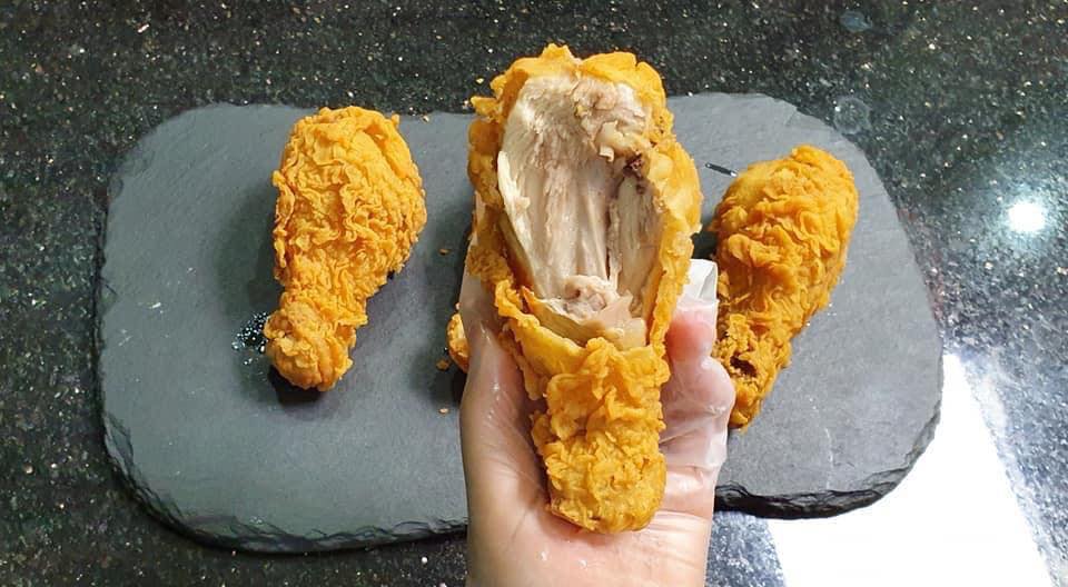 Chao ôi cái miếng gà rán thơm ngon đến vụn bôt cuối cùng này, tưởng tượng xem, tay bạn đang cầm chiếc đùi “lấp lánh” với một lớp vỏ vàng giòn bao quanh như những gợn sóng, phủ kín đến mức khó có thể xác định được phải cầm nó lên ở chỗ nào. Khi nó càng đến gần, bạn càng cảm thấy mùi mùi thơm, sức hấp dẫn tỏa ra từ sự kết hợp của các loại gia vị như tỏi, hành tây, hạt tiêu, ớt bột….