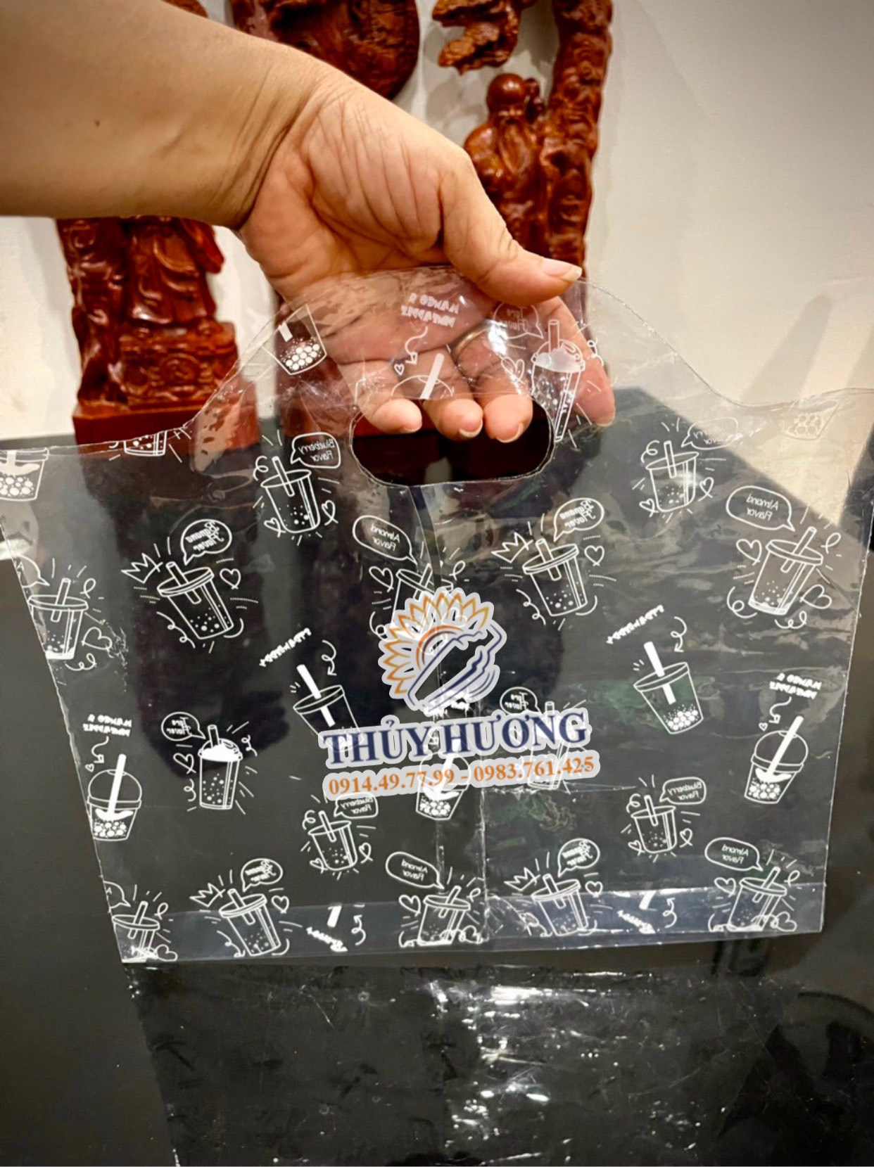 Quý khách có nhu cầu mua túi đựng ly trà sữa, đồ uống mang về liên hệ với Thuỷ Hương qua hotline: 091.449.7799 hoặc FB https://www.facebook.com/Nguyenlieuthuyhuong