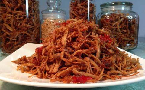 - Sợi thịt khô xé vừa dai, ngọt, cay cay, đậm đà với mùi thơm của thịt ngấm gia vị đã trở thành món ăn vặt được nhiều bạn trẻ ưa thích. Nhưng thịt khô càng hấp dẫn và đậm vị hơn khi được kết hợp với các món ăn vặt khác. Chắc hẳn mỗi người đều nhớ cảm giác ngồi nhâm nhi miếng thịt bò khô vừa dai vừa đậm đà gia vị những ngày mát trời. Thịt bò khô vừa thơm, dai dai, càng nhai càng thấm cái vị cay xé nơi đầu lưỡi nhưng vẫn làm người ăn “ưng cái bụng” bởi vị ngọt kèm chút chua chua trong đó.- Trong cái lạnh của mùa đông mà được thưởng thức vị cay xé, thơm ngon của sợi thịt khô quả là ấm áp lạ thường. Nhưng mách nhỏ bạn biết là thịt khô có thể kết hợp cùng nhiều món ăn vặt để vừa giữ được hương vị đặc trưng của miếng thịt đã tẩm ướp gia vị, vừa mang tới cảm giác lạ miệng cho các bạn trẻ thích ngồi vỉa hè “chém gió” cùng chúng bạn và ngắm cảnh đường phố tấp nập.